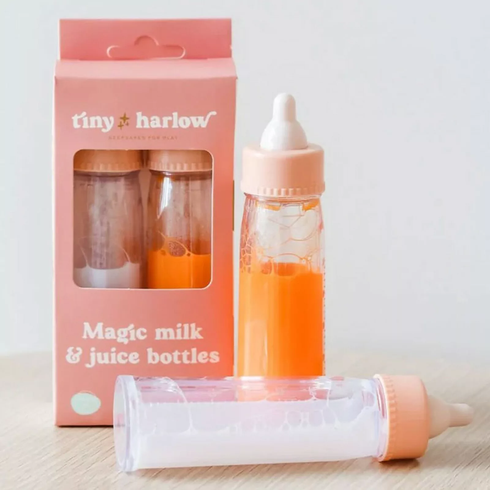 Avec le Duo de Biberons Magiques pour Poupée créé par Tiny Harlow, votre bout de chou pourra faire comme les grands en nourrissant tendrement sa poupée. Ce set est composé d'un biberon de lait et d'un de jus de fruit factices.