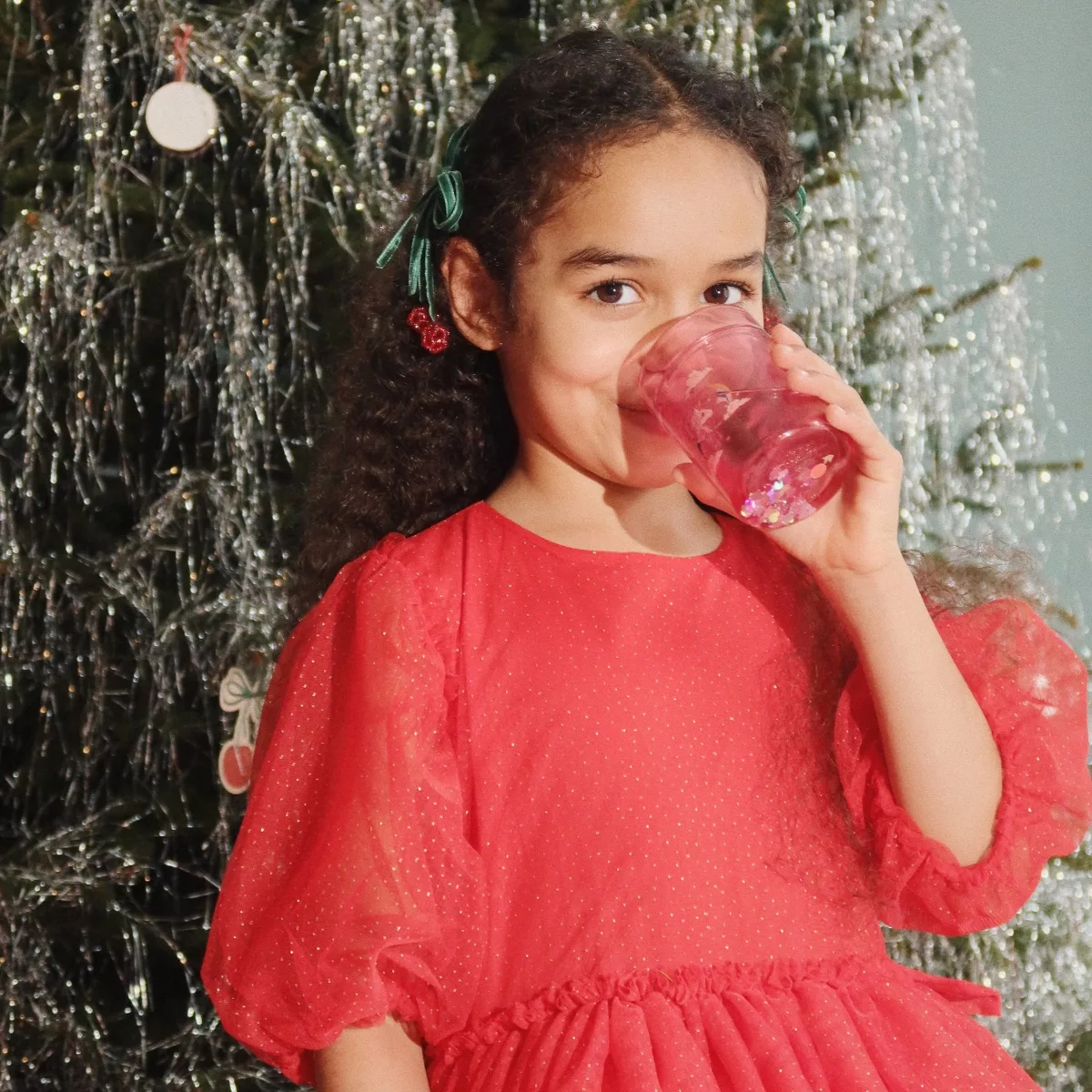 Apportez une touche d’enchantement à chaque boisson avec le lot de 2 verres pailletés Dino de Konges Sløjd.